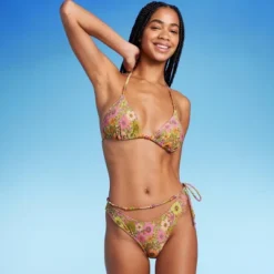 Women’s Bead Detail U-Neck Multi-Way Bralette Bikini Top – Wild Fable⢠Multi Tropical Print