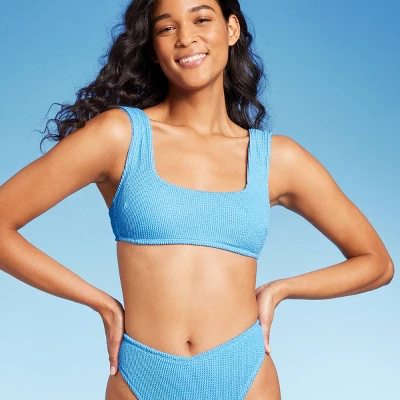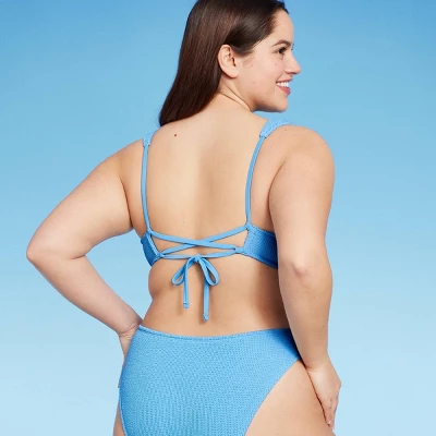 Square-neck bralette bikini top from Wild Fable™ in a solid color with pucker texture. Made of a soft, stretchy fabric and comfy lining with removable cups. Crisscross back with string tie fastening completes the look with a customizable fit.